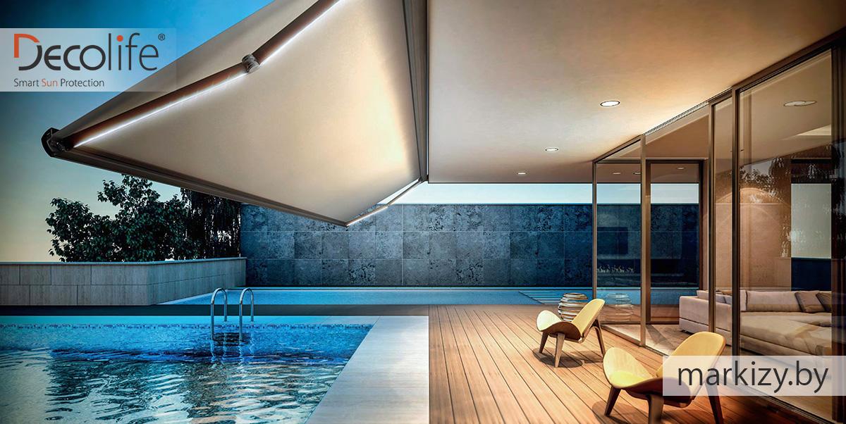 Markizy - G-series отличаются высокими техническими характеристиками, обладая при этом дизайнерским внешним видом. В линейке 6 видов маркиз: две открытые маркизы - G100, G200, две полукассетные маркизы - G100, G220, кассетная маркиза - G500 и витринная маркиза - G400. Базовые комплектации оснащаются LED-подсветкой - они представлены маркизами Concept G600.